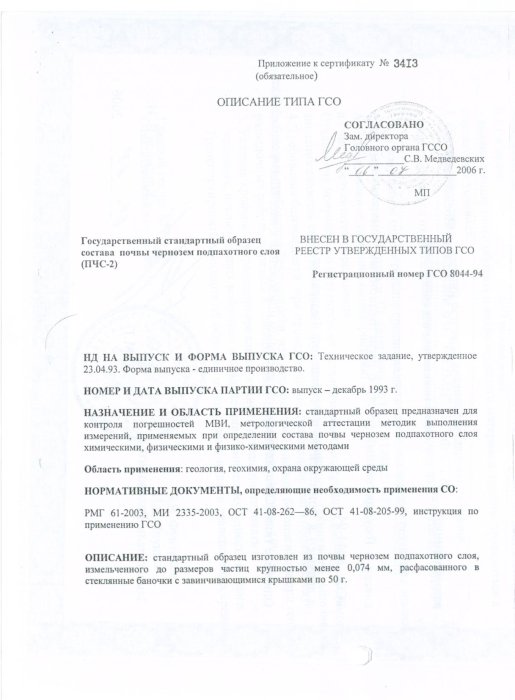 Государственный стандартный образе состава почвы чернозем подпахотного слоя (ПЧС-2)