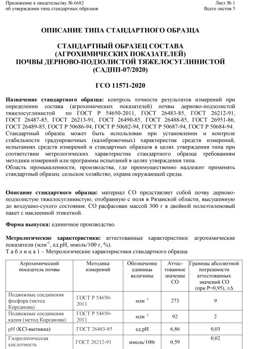 Стандартный образец состава(агрохимических показателей)почвы дерново-подзолистой тяжелосуглинистой (САДПП-07/2020)